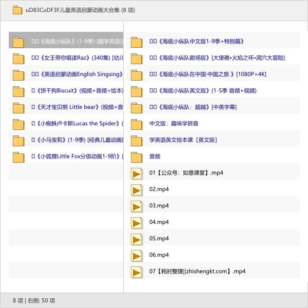 本次分享的资源是「🌼儿童英语启蒙动画大合集」,里面全是精选的经典内容,特别适合给孩子做英语启蒙,而且都是高清完整的版本,拿来就能用!